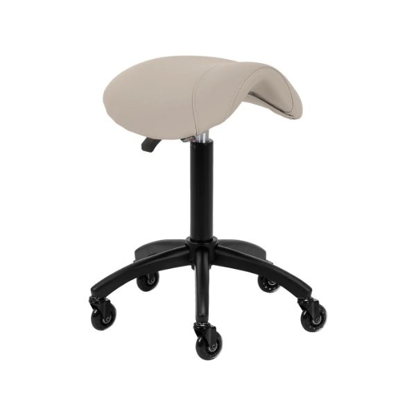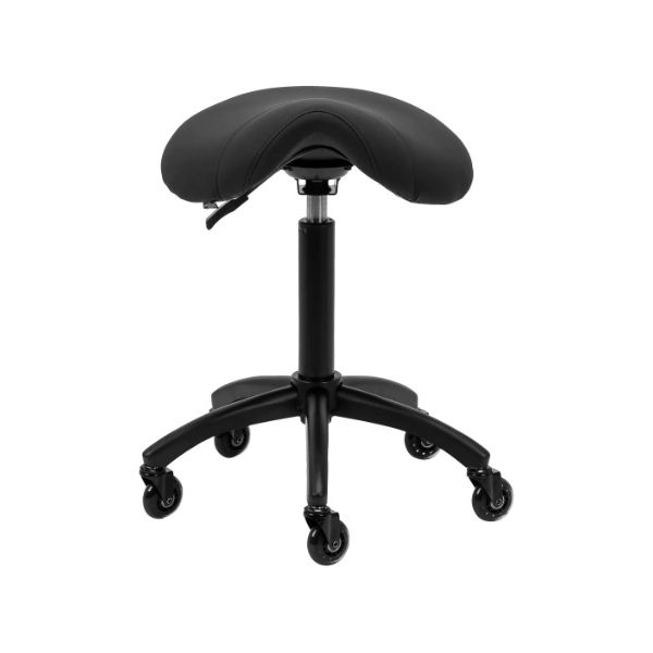 Podešavanje visine sjedala u rasponu od 56-77 cm omogućuje stručnjaku prilagodbu položaja tijekom izvođenja usluga. Pravilno profilirano u obliku sedla, sjedalo ispunjeno pjenom otpornom na deformacije jamči udobnost i ergonomiju rada. Mehanizam pune rotacije čini rad učinkovitijim i praktičnijim. Pokretljivost omogućuju Roll Speed kotači s željeznim jezgrom i poliuretanskim (PU) premazom, koji kombiniraju glatko kretanje s iznimnom otpornošću na habanje. Korištenje ležajeva klase ABEC-7 olakšava pomicanje stolca, što znatno olakšava manevriranje.
