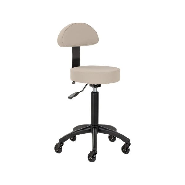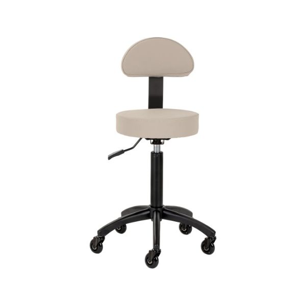 Stolac je montiran na crnu bazu s pet krakova i polumat završnom obradom, što osigurava izvrsnu stabilnost čak i pri intenzivnoj upotrebi. Sjedalo je presvučeno izdržljivom sintetičkom kožom u nijansama sive i bež, otporno na vlagu, prljavštinu i svakodnevnu upotrebu, a pjenasto punjenje zadržava oblik čak i pod dugotrajnim opterećenjem. Moderan, estetski izgled savršeno uklapa stolicu u profesionalne interijere. To je praktičan i elegantan izbor za frizere, kozmetičke salone i salone, gdje su udobnost rada, kvalitetna izrada i moderna oprema važni.
