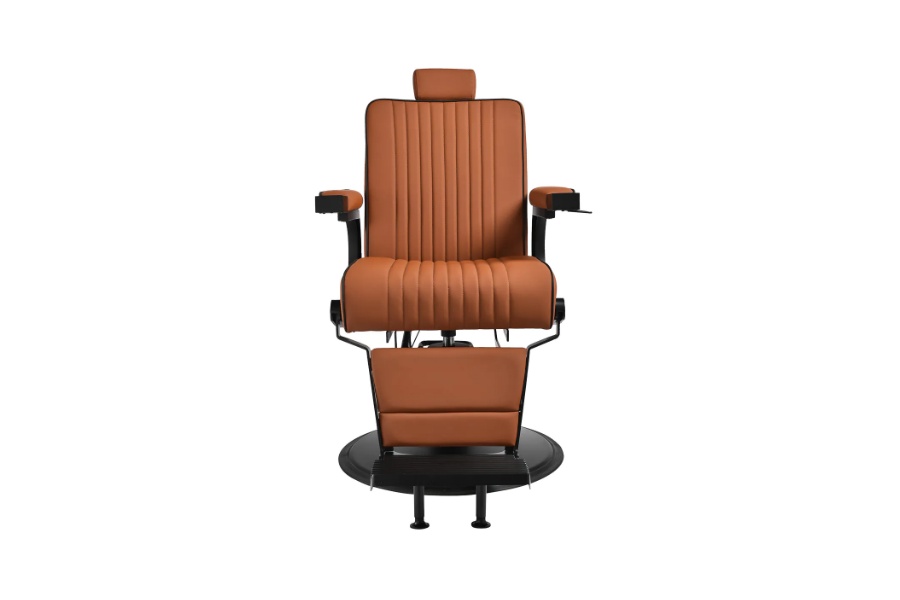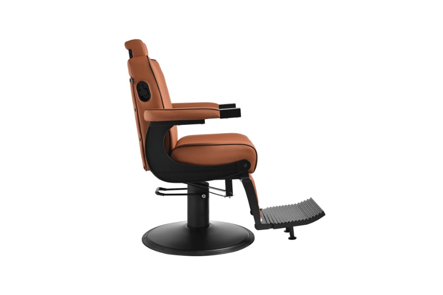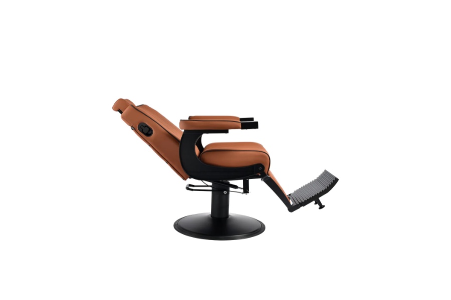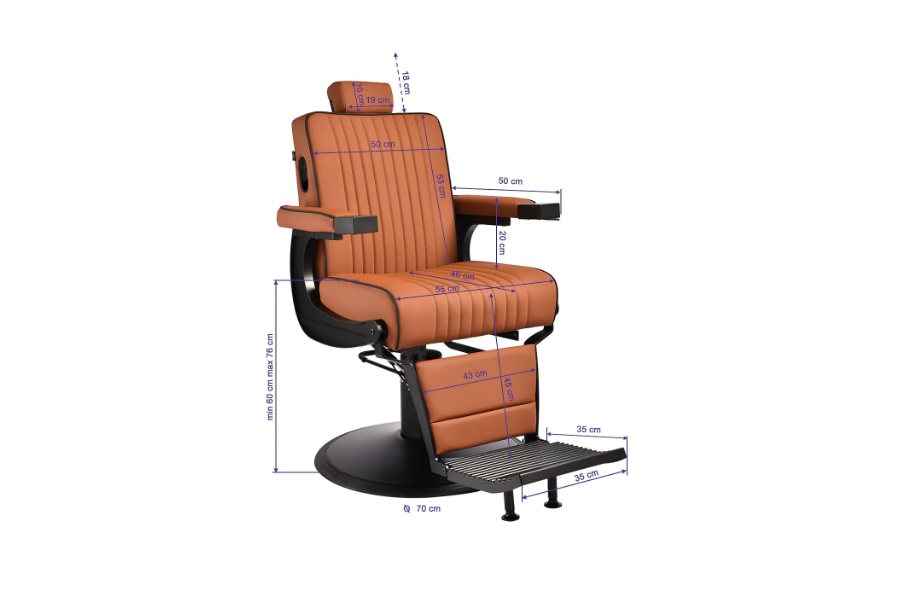Elegantna brijačka stolica Brijačka stolica Levi kombinira stil i funkcionalnost. Opremljena robusnim hidrauličkim podizačem, podesivim naslonom, osloncem za noge i produljivim naslonom za glavu, omogućuje pozicioniranje prilagođeno vrsti tretmana koji se izvodi . To osigurava maksimalnu udobnost i za klijenta i za osobu koja obavlja uslugu. Pažljivo izrađeni detalji , vertikalni šavovi presvlake i elegantne završne obrade čine stolicu upečatljivim dodatkom svakoj brijačnici. Širok raspon mogućnosti podešavanja Učinkovito hidraulično podizanje omogućuje glatko podešavanje visine sjedala od 60 do 76 cm , čak i dok klijent sjedi, što omogućuje ergonomsko podešavanje stolice visini klijenta i preferencijama osobe koja izvodi tretman. Intuitivni bočni mehanizam omogućuje jednostavno naginjanje naslona i oslonca za noge , osiguravajući udobnost tijekom preciznijih postupaka. Produživi naslon za glavu pruža dodatnu potporu glavi, povećavajući udobnost. Udobnost za udobnost rada Sjedalo je ispunjeno mekom pjenom, što osigurava udobnost čak i tijekom dugih tretmana , dok ergonomski oblikovani naslon podupire leđa. Mehanizam potpunog okretanja povećava slobodu kretanja i omogućuje jednostavan pristup sa svih strana, pojednostavljujući tijek rada stilista. Tapecirani nasloni za ruke, postavljeni na optimalnu visinu, podržavaju prirodni položaj ruku , smanjujući naprezanje ramena i vrata. Dodatna pogodnost je praktični držač za ručnike smješten ispod lijevog naslona za ruke, što olakšava organizaciju rada.