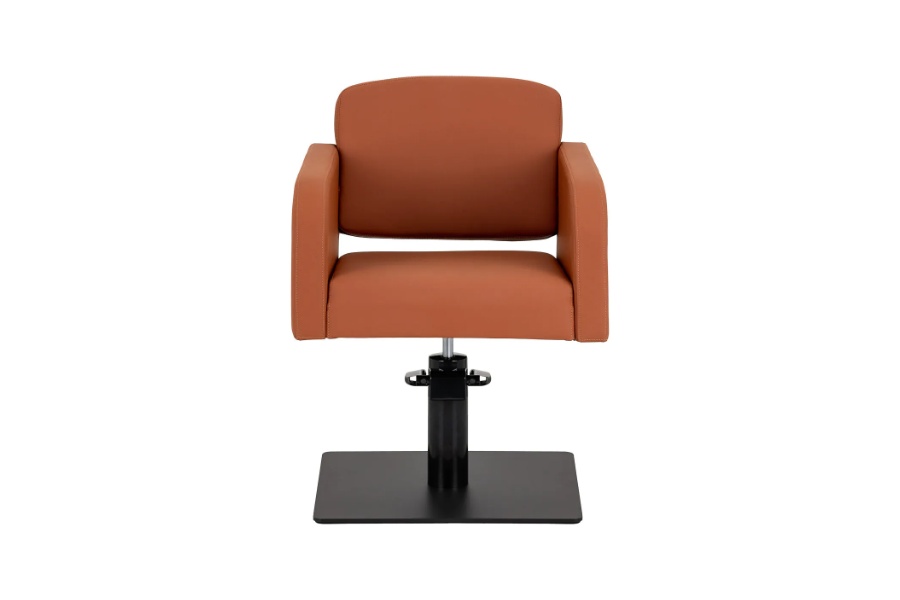 Minimalistički frizerski stolac savršen za moderne frizerske salone. Zahvaljujući tapeciranom jastuku, izgled stolice se može prilagoditi stilu frizerskog salona.