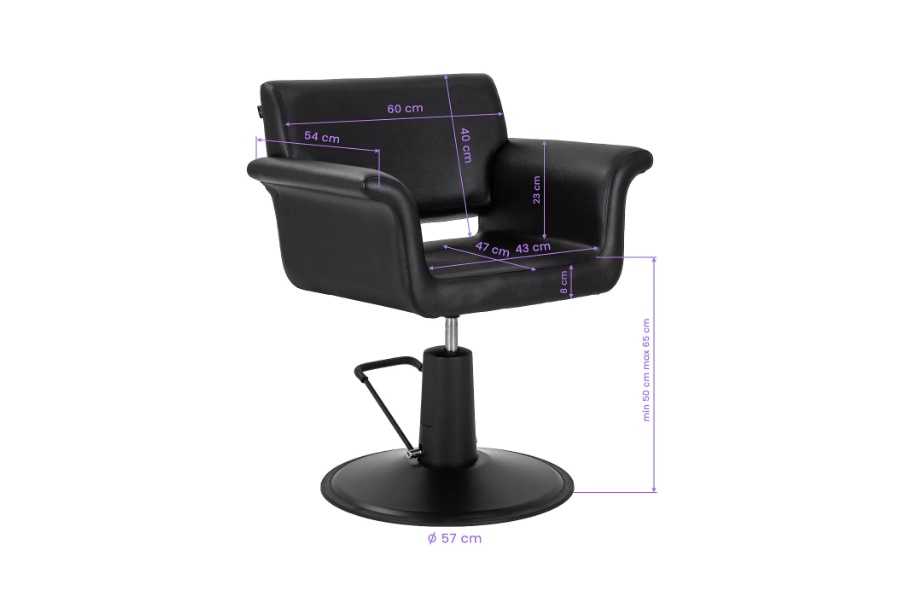 Minimalistička fotelja za frizerski salon Frizerska stolica Lucca kombinira funkcionalnost s bezvremenskom estetikom. Izdržljivo hidraulično podizanje omogućuje glatko podešavanje visine , što olakšava prilagođavanje položaja potrebama stilista. Ergonomsko sjedalo s udobnim naslonom i elegantnim naslonima za ruke osigurava udobnost tijekom tretmana, dok njezin moderan, minimalistički dizajn čini stolicu savršenom za klasične i suvremene salone. Ergonomija za udobnost rada Robusni hidraulični podizač omogućuje glatko podešavanje visine sjedala od 50 do 65 cm , čak i kada klijent sjedi u stolici. To omogućuje jednostavno podešavanje visine i klijenta i stilista, potičući ergonomsko držanje tijekom rada. Udoban naslon pruža stabilnu potporu leđima , osiguravajući udobnost čak i tijekom dugih tretmana. Mehanizam potpunog okretanja povećava slobodu kretanja i omogućuje jednostavan pristup klijentu sa svih strana.