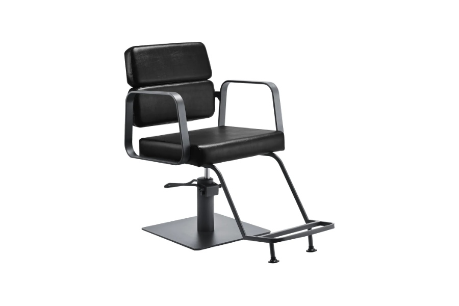 Minimalistički frizerski stolac savršen za moderne frizerske salone. Zahvaljujući tapeciranom jastuku, izgled stolice se može prilagoditi stilu frizerskog salona.
