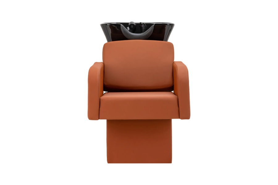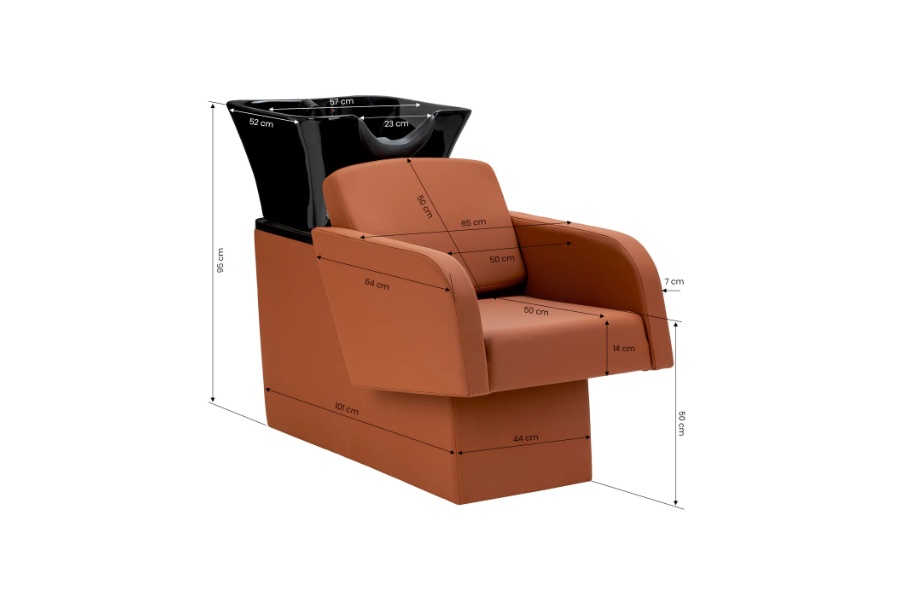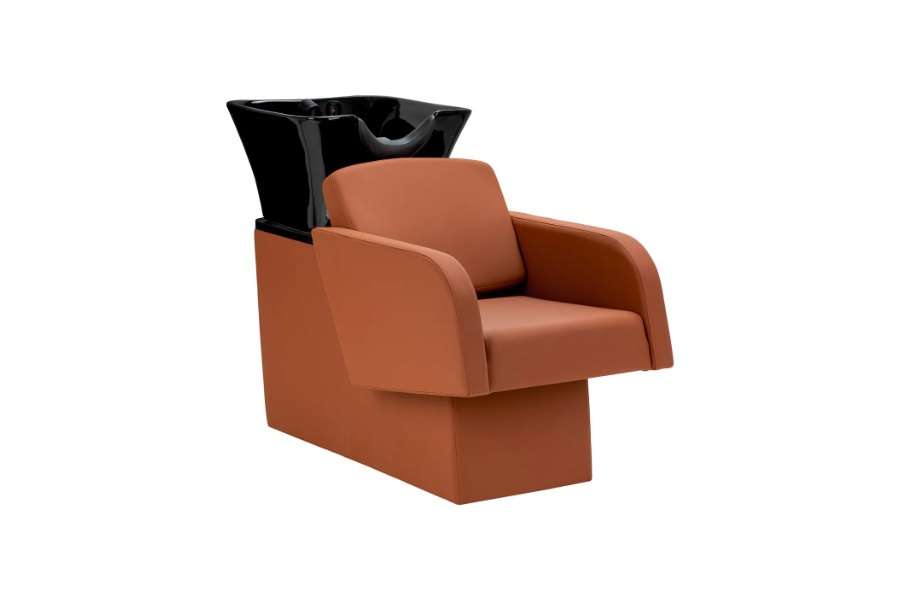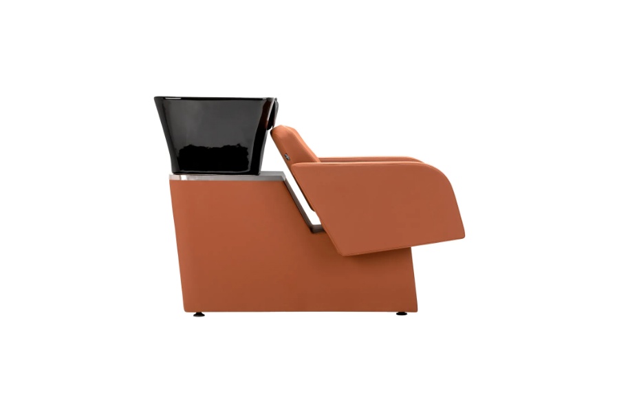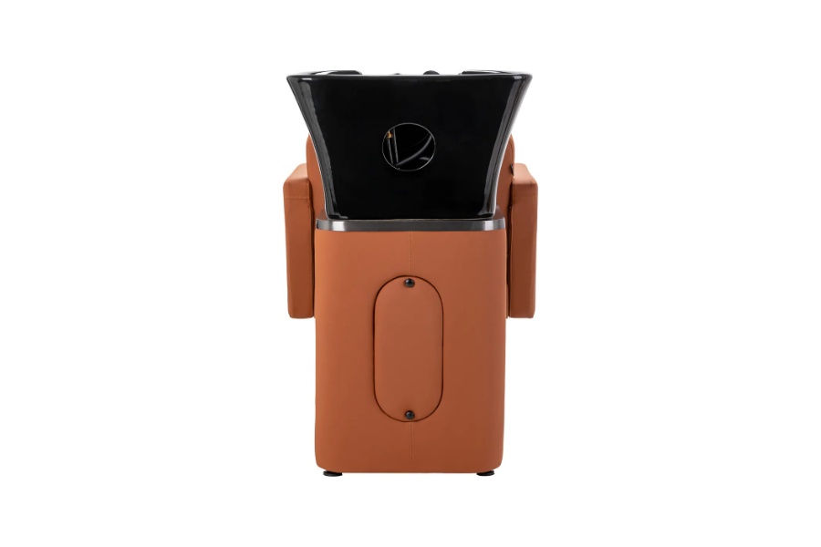 Keramička zdjela umivaonika u nijansama crne, modernog oblika i odgovarajuće dubine, učinkovito sprječava prskanje vode i proizvoda korištenih tijekom tretmana, omogućujući vam udobno i učinkovito obavljanje širokog spektra usluga. Pravilno profilirani ovratnik i nagnuti naslon pružaju udobnost i potporu pri pranju kose, a plastična kapa u nijansama crne štiti klijenta od hladnoće keramičke površine, jamčeći ugodno iskustvo tijekom tretmana.
