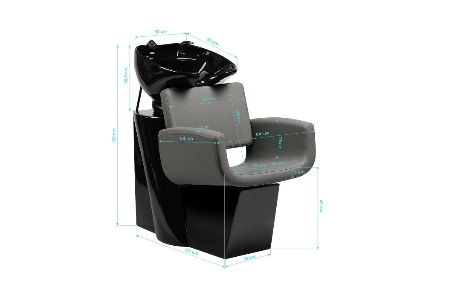 Duboka, keramička zdjela u nijansama crne smanjuje prskanje vode i kozmetike korištene tijekom tretmana. Podesivi kut nagiba omogućuje vam da prilagodite položaj prema vašim individualnim potrebama. Izdržljivi materijal pruža otpornost na promjenu boje, ogrebotine i kemikalije, a glatka površina olakšava održavanje čistoće. Ergonomski oblikovana ogrlica jamči udobnu potporu glavi.