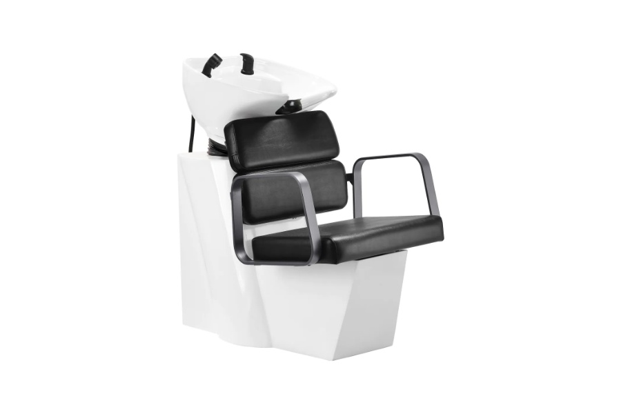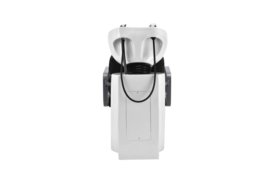 Praktična autopraonica opremljena je slavinom s mikserom, što omogućuje slobodan pristup toploj i hladnoj vodi. To olakšava prilagodbu temperature prema individualnim preferencijama kupca. Posebno mjesto za odlaganje slušalice olakšava rad, a kromirani čep sa specijalnim cjedilom omogućuje kontrolu protoka vode i održavanje visokih higijenskih standarda u dnevnom boravku. Priključak za vodu postavljen je unutar baze, što omogućuje učinkovito skrivanje cijevi. Značajna prednost ovog modela je rupa između naslona i sjedala, što olakšava održavanje dnevnog boravka čistim i omogućuje lako čišćenje prljavštine sa svakog kuta naslonjača. Autopraonica je profilirana tako da pruža udobnost tijekom različitih tretmana, jamčeći adekvatnu potporu leđima. Kombinacija funkcionalnosti i pogodnosti čini rad u frizerskom salonu još ugodnijim.
