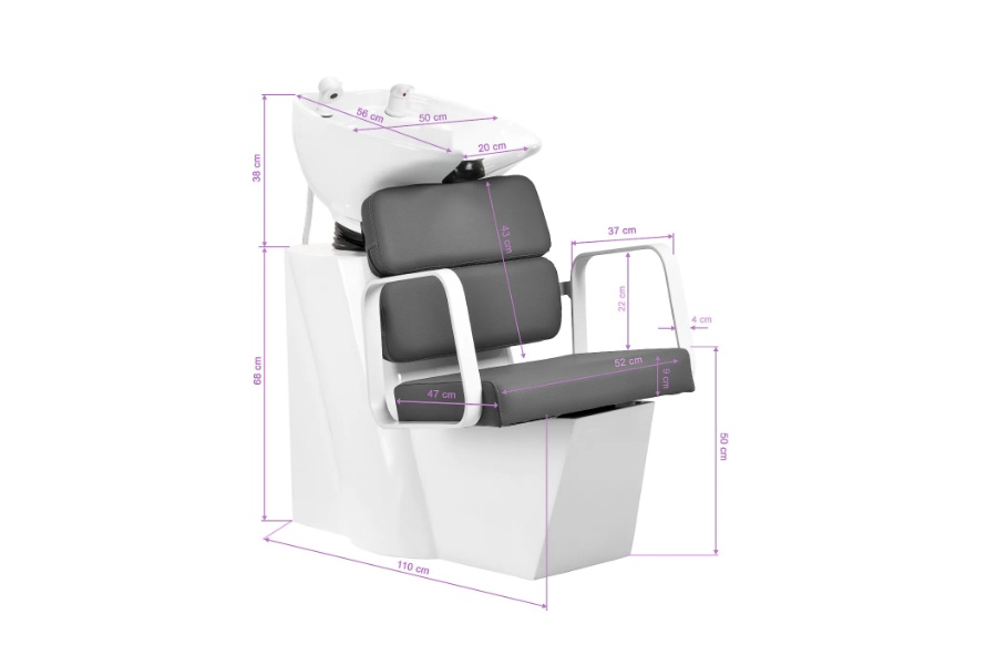 Odgovarajuća dubina crne keramičke posude za umivaonik sprječava prekomjerno prskanje vode ili proizvoda korištenih tijekom tretmana. To omogućuje udobno i učinkovito izvođenje širokog spektra usluga. Kut nagiba zdjele može se prilagoditi, što olakšava prilagodbu individualnim potrebama. Visoka kvaliteta korištenih materijala čini umivaonik izdržljivim, otpornim na promjenu boje i ogrebotine te vrlo jednostavnim za čišćenje. Pravilno profilirani ovratnik i nagnuti naslon pružaju potporu i udobnost tijekom pranja kose, a zahvaljujući udobnoj plastičnoj kapi u nijansama crne, kupac neće osjetiti nelagodu povezanu s hladnoćom keramičke površine.