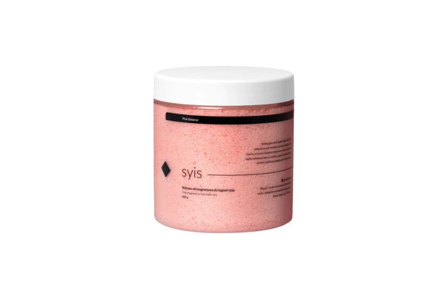 Syis Pink Balance je opuštajuća sol za kupanje stopala. Mineralna kupka osvježava kožu, donosi olakšanje i opuštanje umornim stopalima nakon dugog dana. Suptilan miris šumskog voća i ružičasta boja soli pretvaraju svakodnevnu njegu u ugodan, luksuzan ritual opuštanja. Proizvod savršeno priprema stopala za daljnju njegu ili pedikuru.