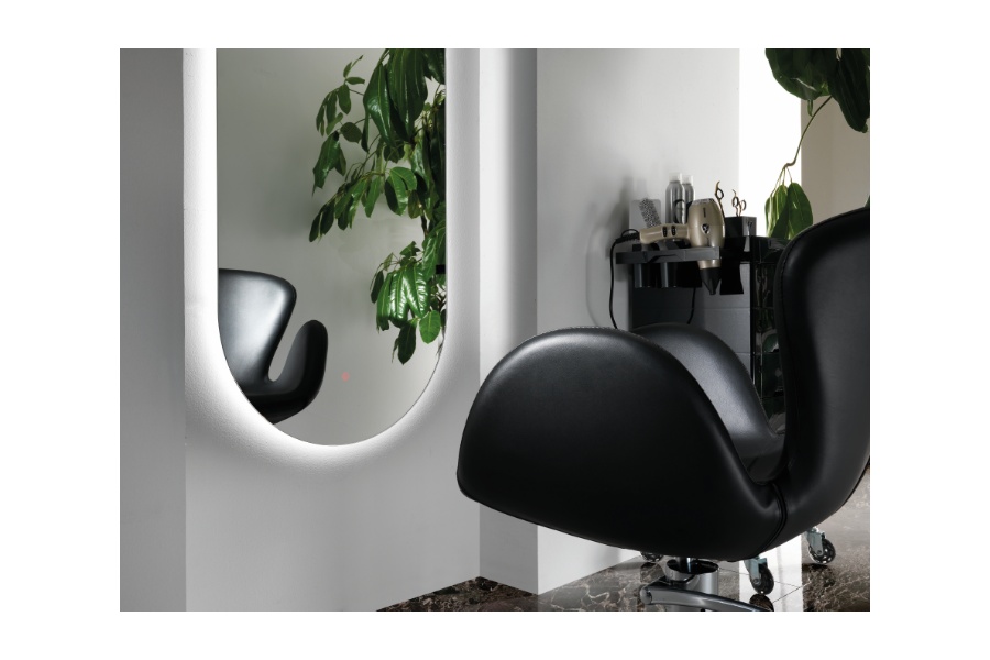 Tapecirano frizersko radno mjesto. Idealno za frizerske salone s minimalističkim dekorom.