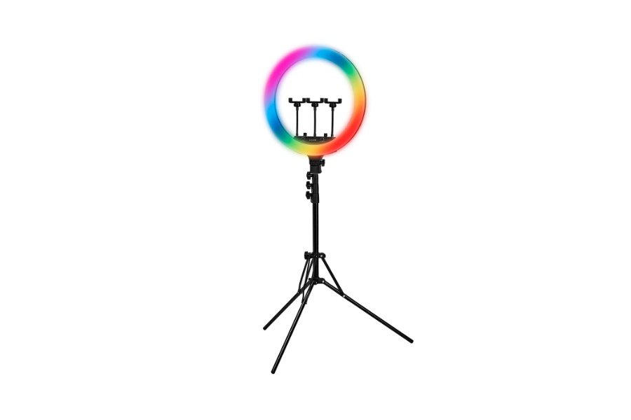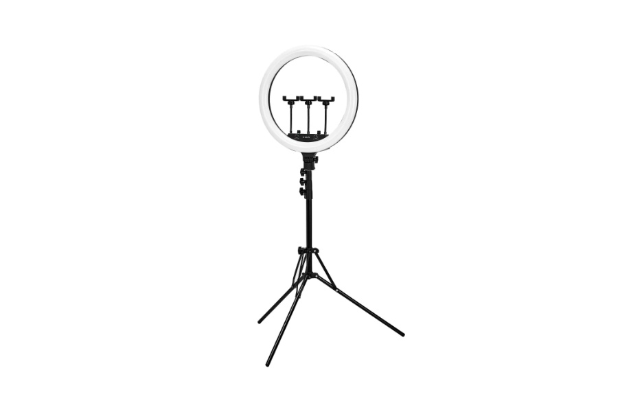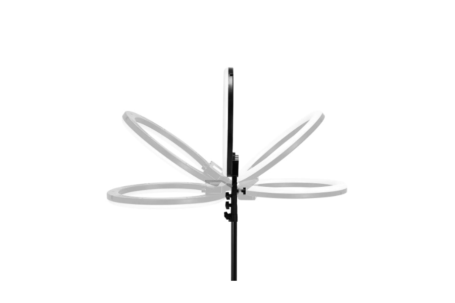 Unutar prstena svjetiljke nalaze se gumbi koji omogućuju glatko podešavanje temperature boje u širokom rasponu od 3000 do 6000 K, kontrolu intenziteta svjetla u 12 razina i RGB svijetlu boju. Daljinski upravljač omogućuje promjenu svjetla iz daljine. Ove funkcionalnosti pružaju dodatnu fleksibilnost pri korištenju svjetiljke. Montaža na čvrsti stativ jamči udobnost rada u kozmetičkom salonu, tattoo studiju ili kod kuće. Osim toga, unutar prstena svjetiljke nalaze se čak tri adaptera za navoje koji vam omogućuju montiranje fleksibilnog držača telefona, koji je uključen u set i – omogućujući vam da proširite stezaljku na najviše 15 cm – odgovara većini pametnih telefona dostupnih na tržištu. USB ulaz na stražnjoj strani svjetlosnog prstena omogućuje vam povezivanje telefona radi punjenja tijekom uporabe.