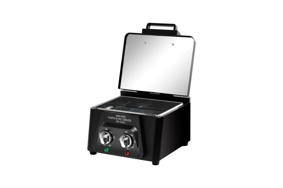 SM-360A visokotemperaturni sterilizator dizajniran je za dezinfekciju alata izrađenih od metala, plastike i kompozitnih materijala, poput škara, češljeva ili pincete. Zahvaljujući dezinfekciji zrakom visoke temperature, proces učinkovito ubija bakterije i alati nisu izloženi mehaničkim oštećenjima. Uređaj je opremljen regulatorom temperature i radnog vremena, što omogućuje jednostavnu prilagodbu parametara potrebama izvođenih tretmana.