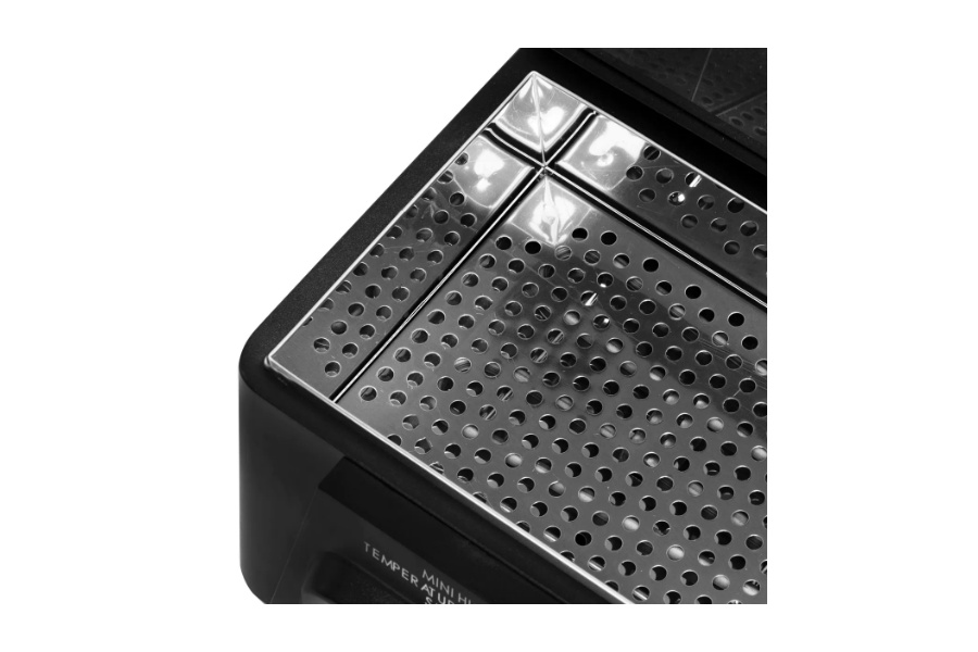 Mat crno kućište osigurava robusnost i izdržljivost uređaja. Kompaktan dizajn čini uređaj jednostavnim za pohranu i transport. Zahvaljujući svojoj maloj masi, sterilizator je praktičan za upotrebu i istovremeno ne zauzima puno prostora u radnom prostoru. Inovativni dizajn i napredna tehnologija jamče učinkovitu dezinfekciju alata, smanjujući rizik od prijenosa bakterija i virusa u uredu.